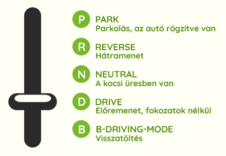 Előremenetbe (D) kapcsolva utad során nem kell többet váltani, sőt, ha a B (visszatöltés) módot választod, akkor a féket is kevesebbszer kell használnod, mert a visszatöltő rendszer lassítja és megállítja az autót.